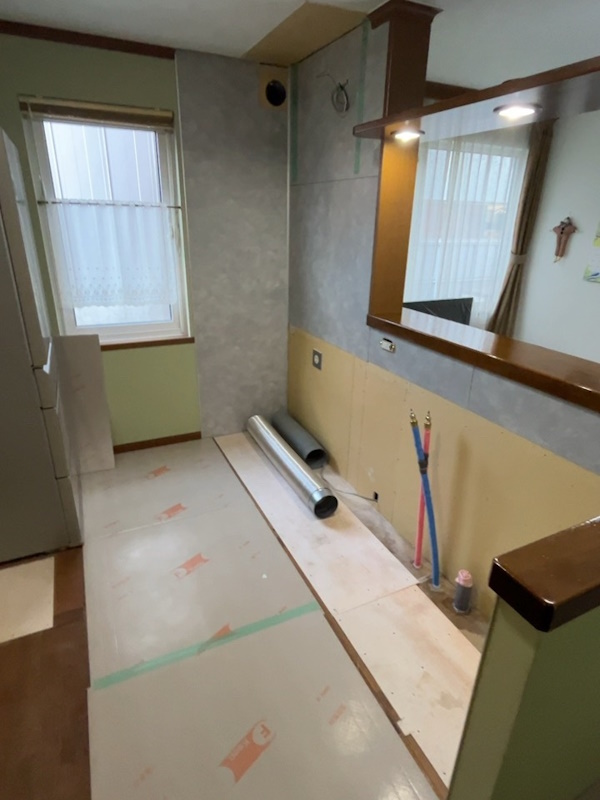 既存のシステムキッチン・食器棚を解体・撤去しました。